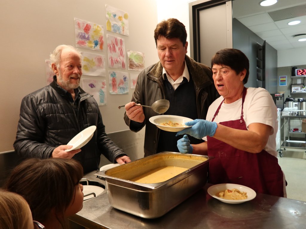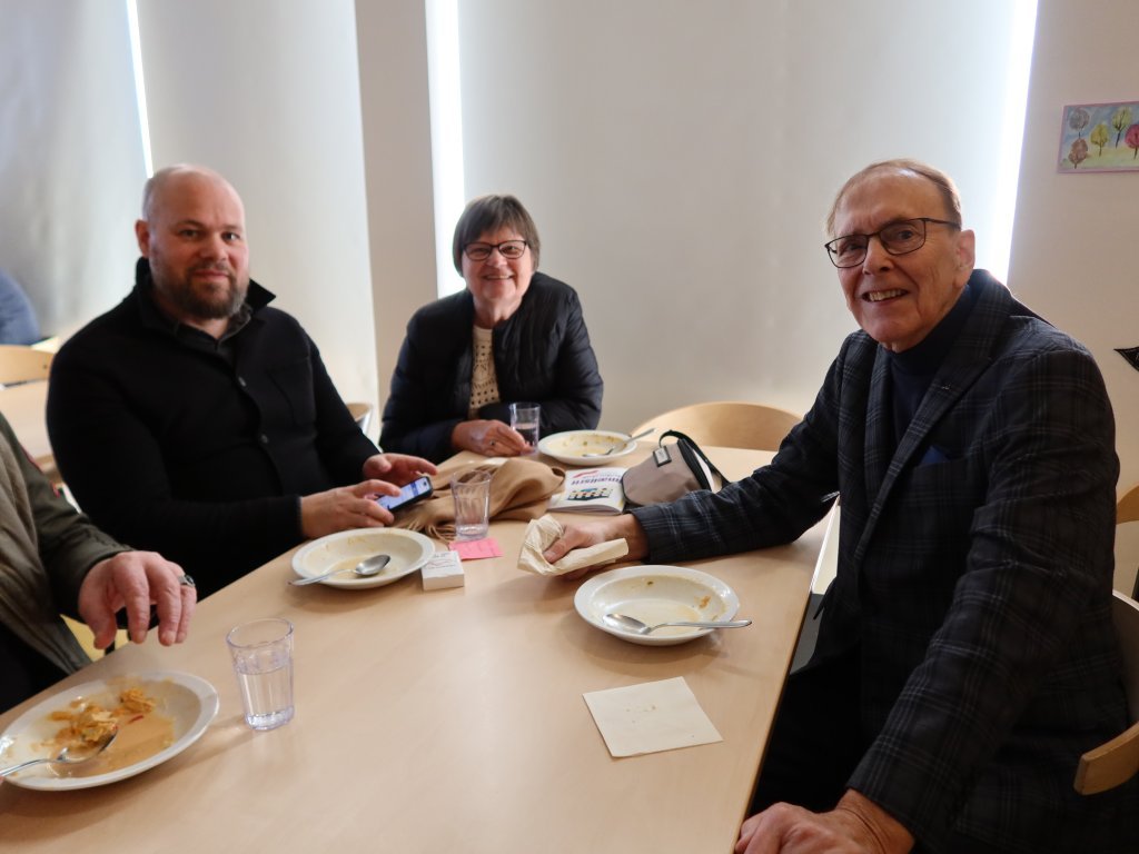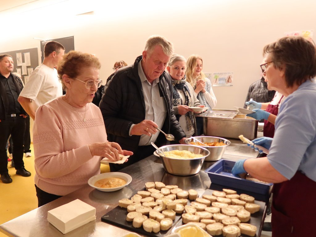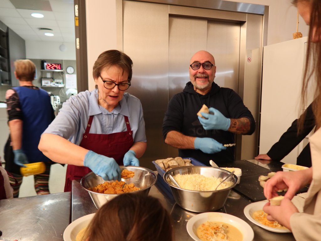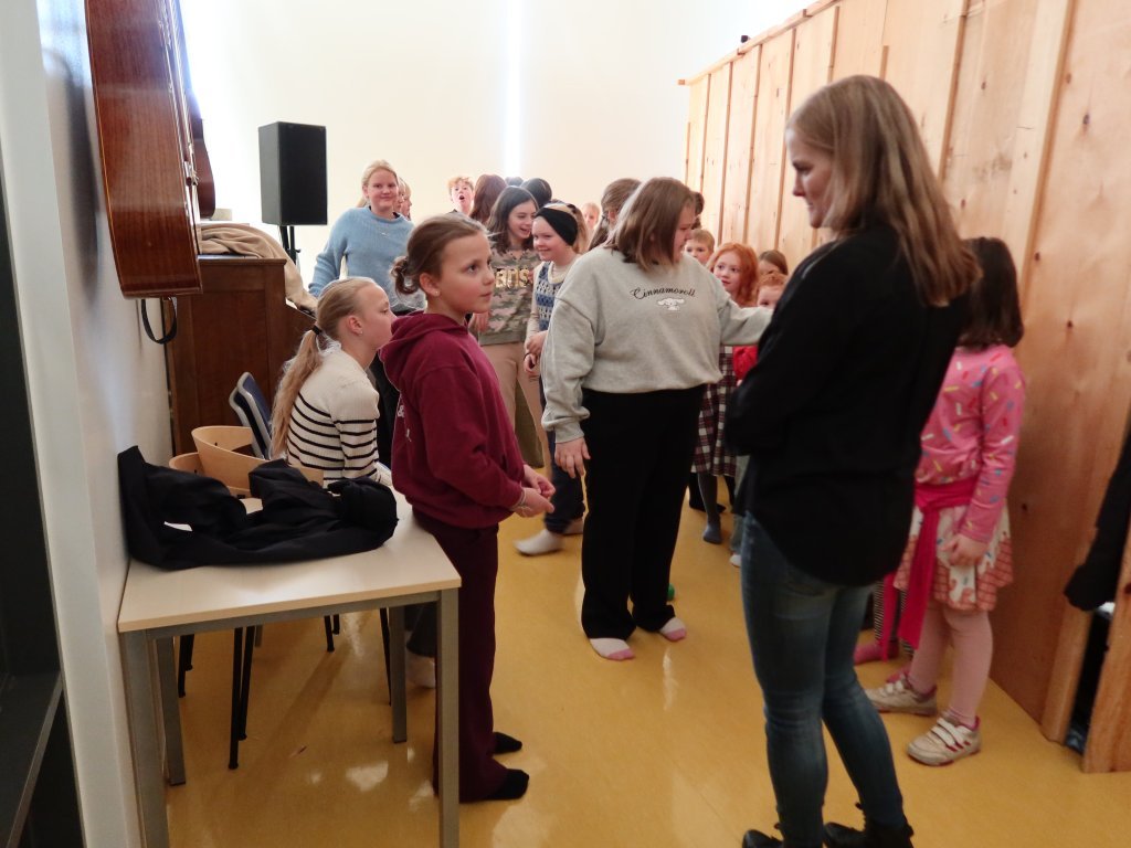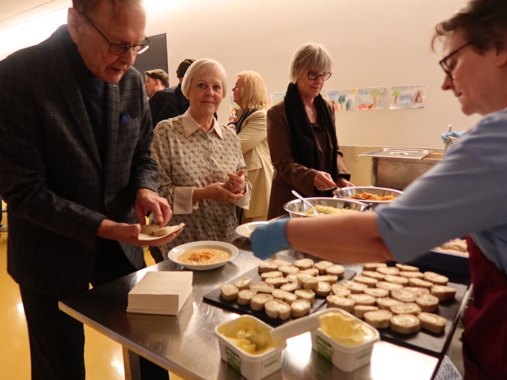 Í hádegisverð var boðið upp á dýrindis kjúklingasúpu og afmælisköku og að lokum flutti Emmsjé Gauti nokkur lög við mikinn fögnuð áhorfenda.