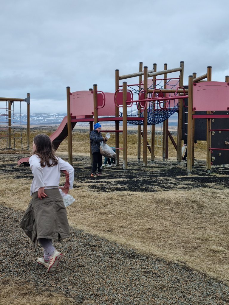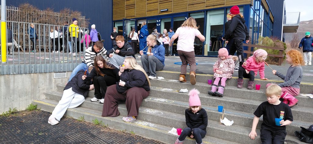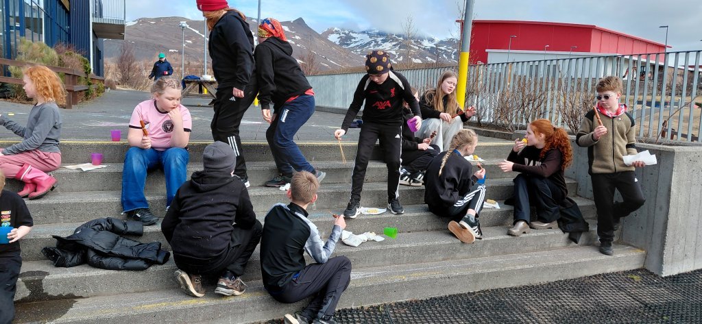 Að lokinni ráðstefnu og morgunmat héldu nemendur og starfsfólk út og tíndu rusl. Í hádeginu var boðið upp á ljúffenga grillpinna og maísstöngla á skólalóðinni. Dagurinn var í alla staði velheppnaður þar sem nemendur og starfsmenn nutu náttúrunnar og áttu góða samveru í leikjum og upplifun.
