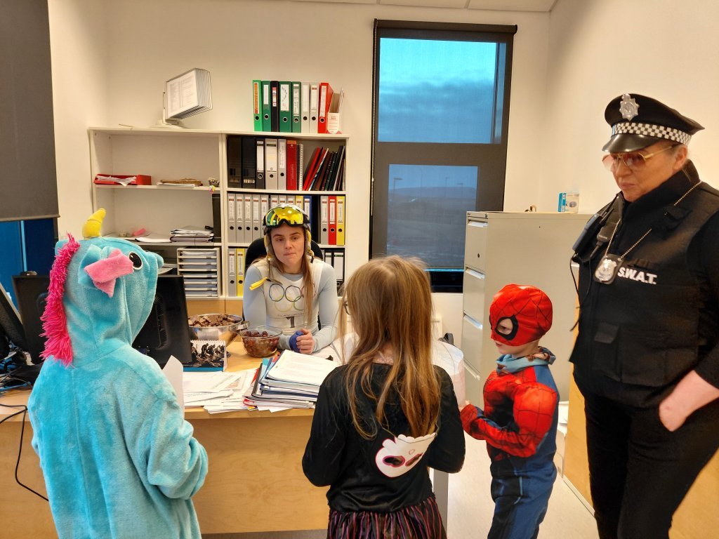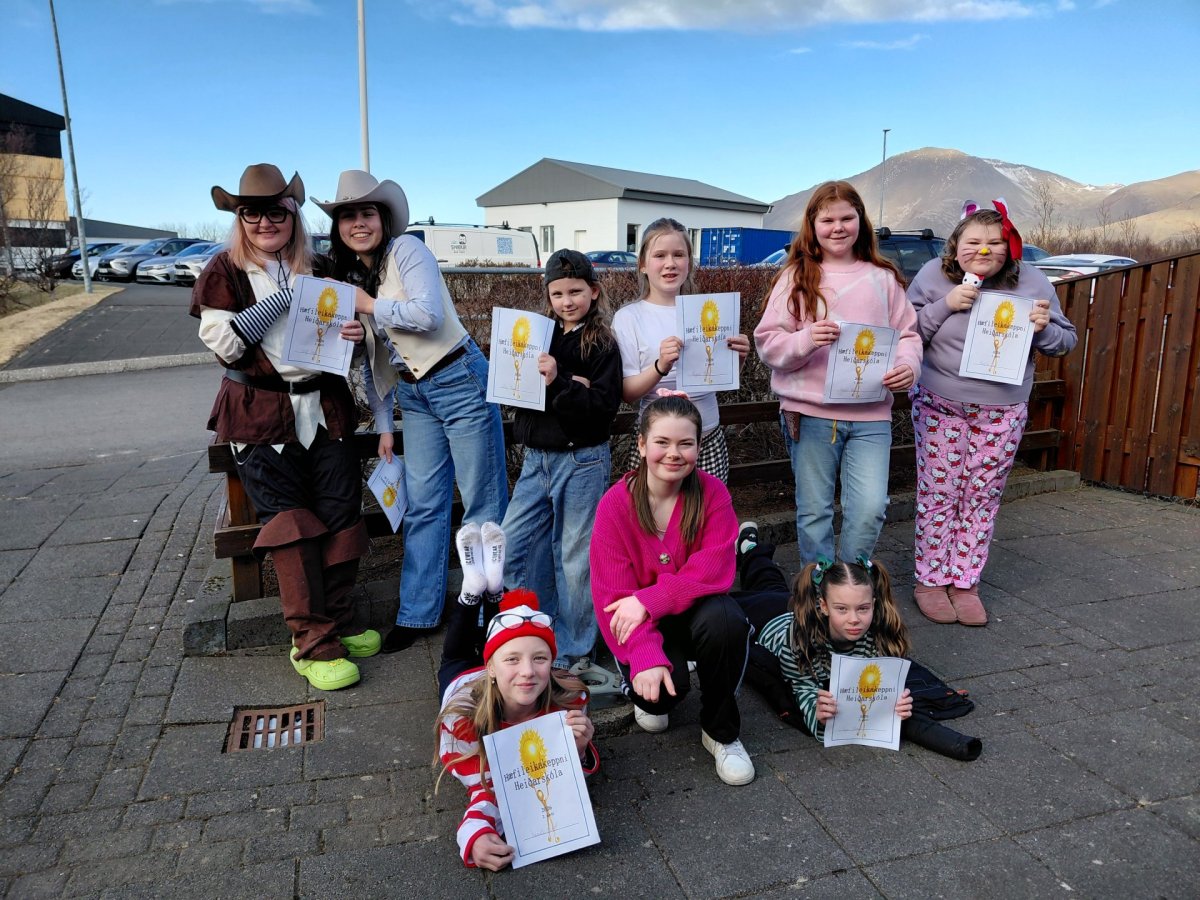 Það var skemmtilegt í Heiðarskóla í dag. Þeir sem vildu mættu í búningum og gaman var að sjá hve margir höfðu gaman af því.
