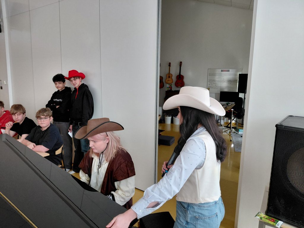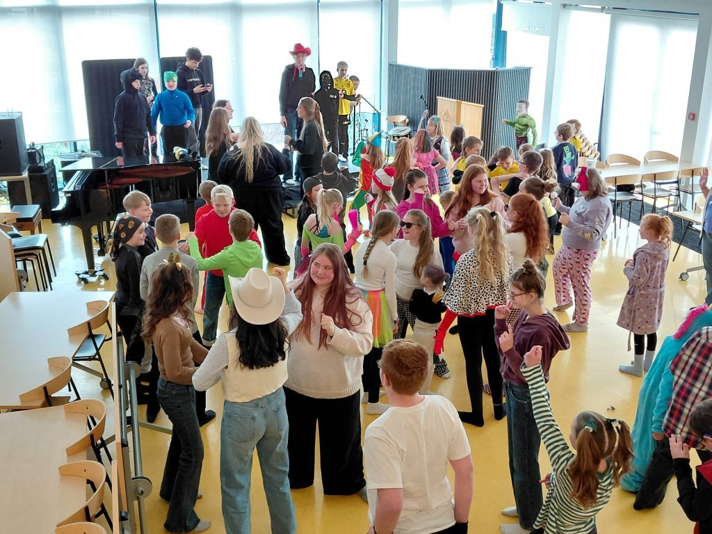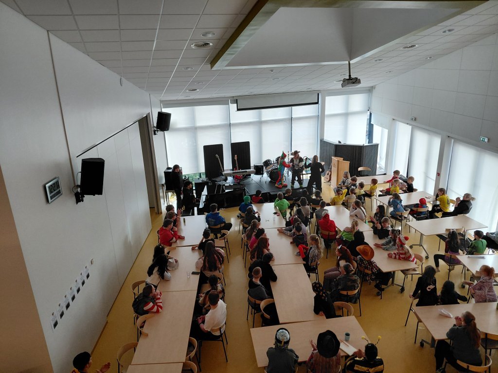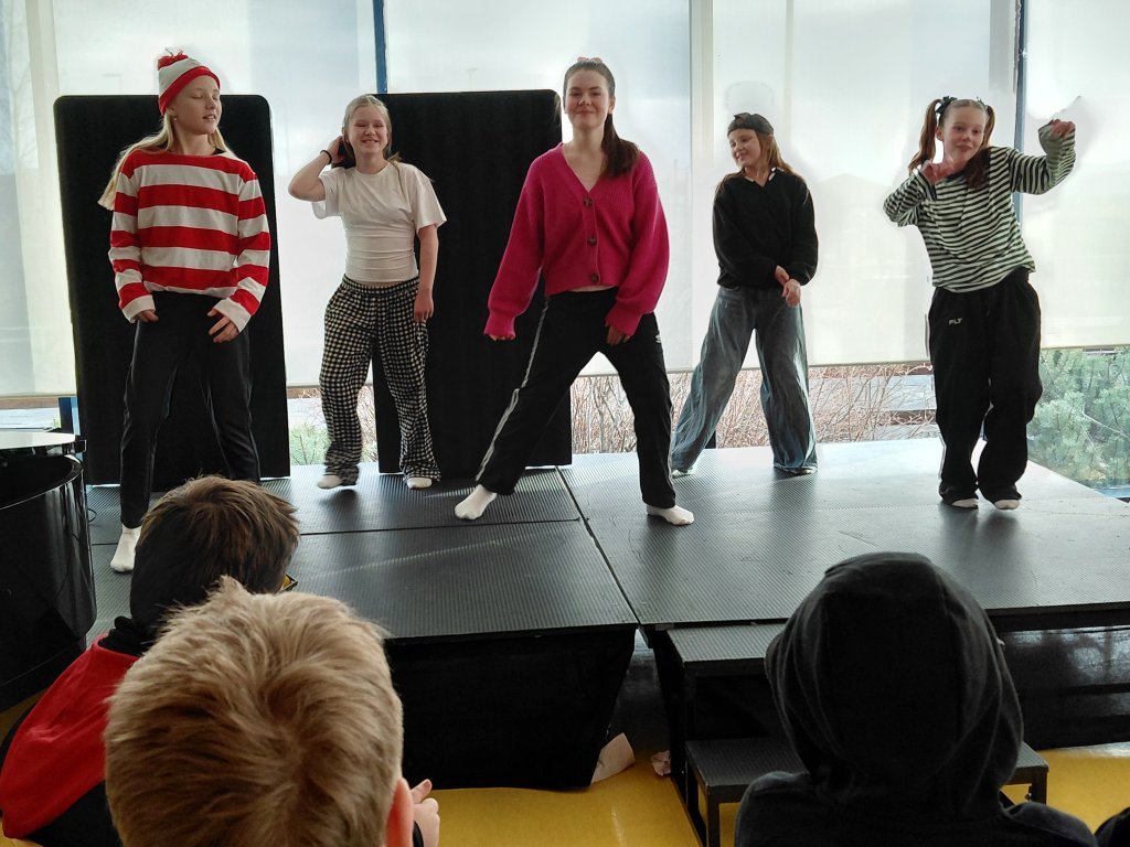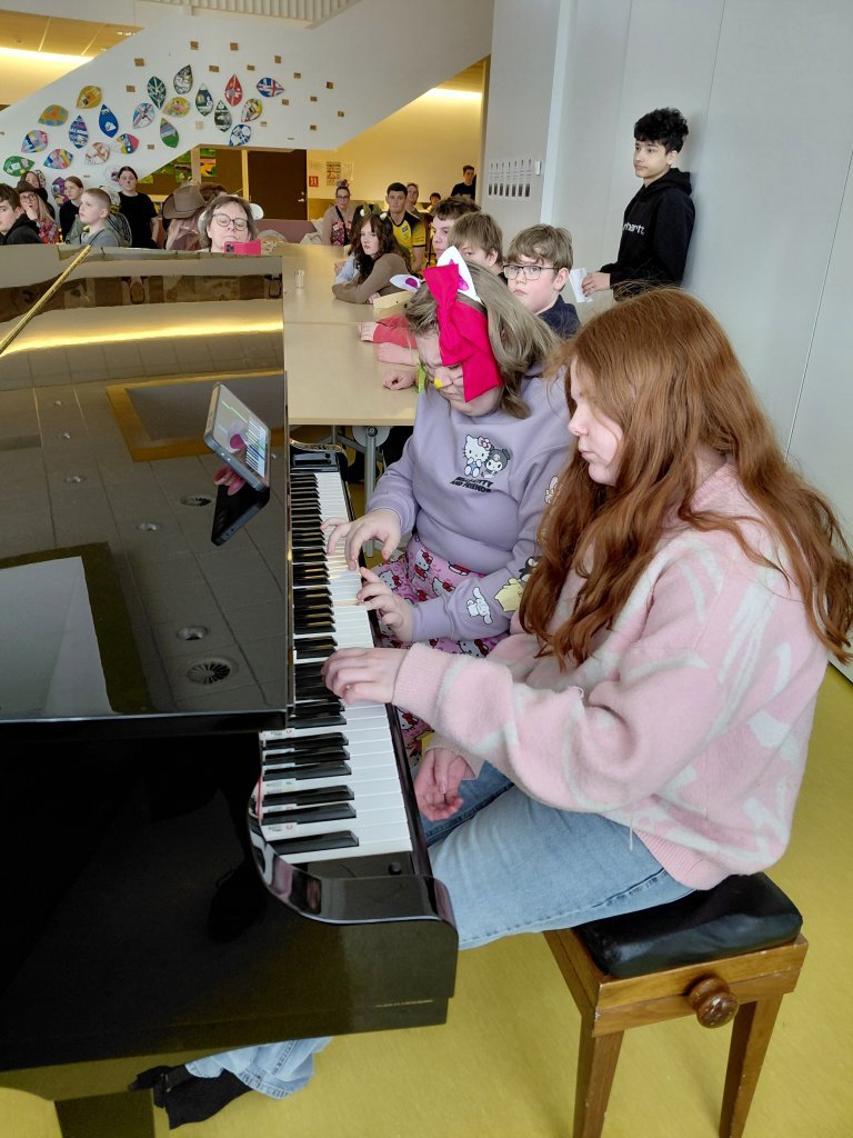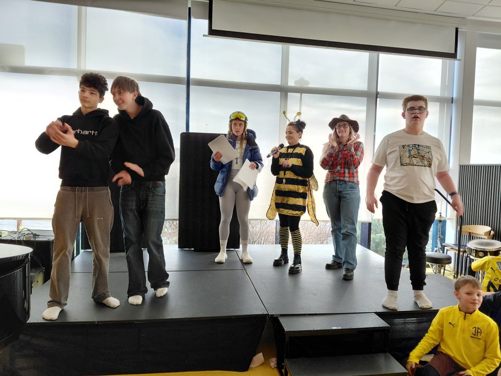 Í hádegisverð borðuðu allir saman og í kjölfarið var haldin hæfileikakeppni Heiðarskóla.