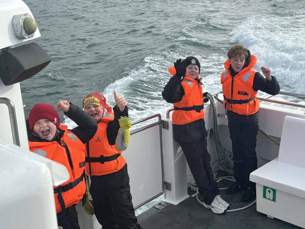Í dag fóru 37 nemendur og starfsfólk af miðstigi Heiðarskóla í eftirminnilega vorferð sem nefnist „Sjóferðin um sundin blá“. Faxaflóahafnir buðu hópnum upp á vandaða fræðslu um lífríki Faxaflóa og umhverfis. Veðrið lék við hópinn og voru leiðsögumennirnir frábærir við að miðla fróðleiknum þannig að hann næði til nemenda. Þetta var mikil upplifun fyrir alla viðstadda. Skólinn útvegaði rútu og kórónaði daginn með því að bjóða öllum upp á ljúffengan ís með dýfu á MosóGrill. Nemendur voru til fyrirmyndar í alla staði. Þau sýndu einstaka kurteisi og var frábært að sjá hve vel þau komu fram. Þessi dagur var sannkölluð ánægjustund og góð byrjun á sumrinu.